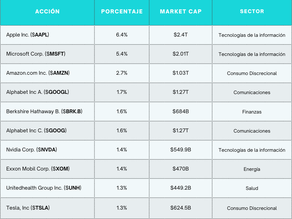 - Diversificación: Es recomendable diversificar la cartera invirtiendo en diferentes sectores representados en el S&P 500.